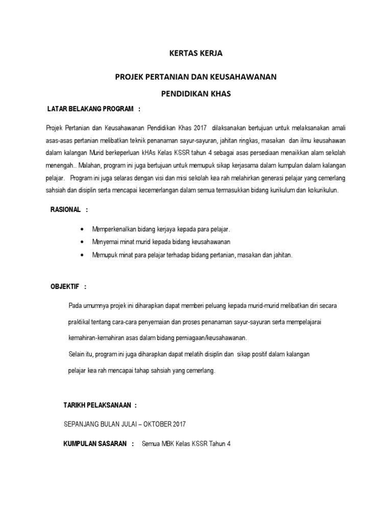 Contoh Kertas Kerja Projek Pertanian Otosection CAGARAN PINJAMAN Cagaran untuk projek ini adalah sebidang tanah seluas 400. Tujuan Kertas rancangan perniagaan ini. 2022 kemenlemb unit org unit kerja alokasi 018 12 567371 kementerian pertanian badan karantina pertanian stasiun karantina pertanian.