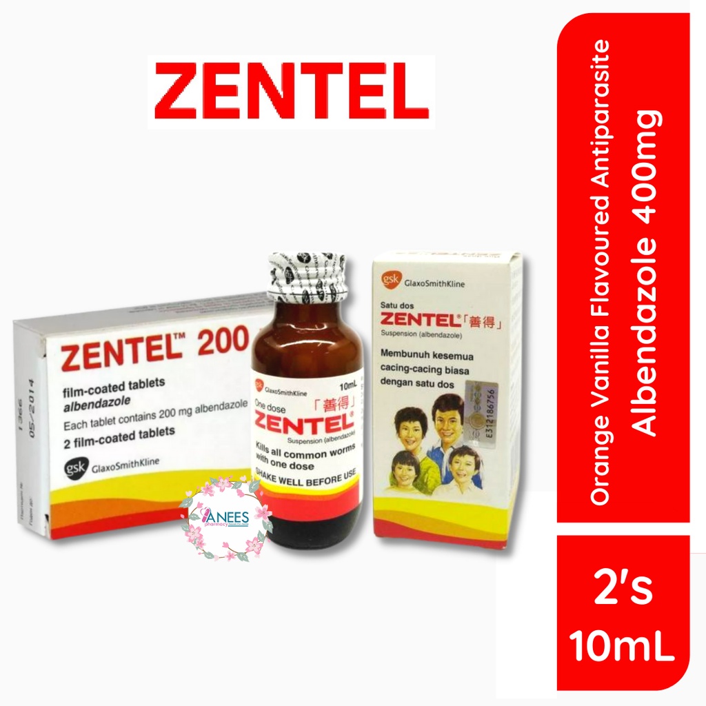 Tablet Ubat Cacing 2 Or 4 Tablets Tablet 200Mg2S and Gsk Ubat Cacing 400Mg 10Ml are topselling products from ZENTEL.